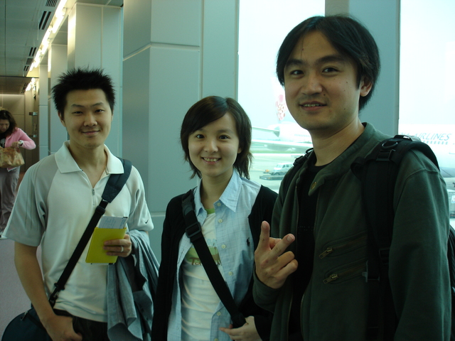 早上十點左右,小毛提著行李箱到了我們的住處,閒聊了一下,我老爸就來載我們到機場了。到了機場,大頭已經跟旅行社的人拿好機票在等我們。這是第一次大夥一起出國玩,格外興奮,三台相機(小毛一台、大頭一台、我和barga一台)亂拍一通。小毛說她要買個保險,因為她目前是家裡經濟支柱,如果這趟旅程發生意外,保險金可以讓她老公還能順利把房子貸款還完,然後能再娶個年輕老婆過完下半生,讓我們聽了不禁為她對老公的真愛流下感動的眼淚~。