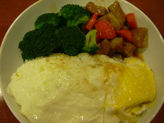 搭配水煮花椰菜和荷包蛋,顏色還蠻漂亮的,再加上前一天料超級實在的奶油濃湯,這餐也顯得頗豐盛呢!